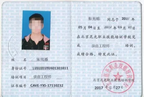 證書頒發(fā):經(jīng)過(guò)培訓(xùn)考試合格者頒發(fā)國(guó)家級(jí)行業(yè)協(xié)會(huì)專業(yè)技術(shù)《錄音工程師》等級(jí)證書 、北京市人力資源和社會(huì)保障局的《結(jié)業(yè)證書》 及《北京昆光學(xué)校培訓(xùn)結(jié)業(yè)證書》