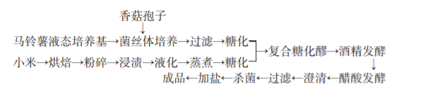 陜北風味香菇小米發酵醋的生產工藝流程: