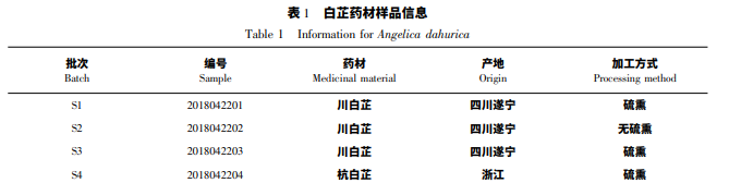 花椒毒酚( 批號: HX106886198) 、異紫花前胡內(nèi) 酯( 批號: HM048527198) 、水合氧化前胡素( 批號: HA061413198) 、白當歸素( 批號: HB157470198) 、補 骨脂 素 ( 批 號: HP018120198 ) 、花 椒 毒 素 ( 批 號: HA061509198) 、佛手柑內(nèi)酯( 批號: HB204394198) 、 氧化前胡素( 批號: HA062924198) 、歐前 胡 素( 批 號: HI041232198 ) 、 異 歐 前 胡 素 ( 批 號: HI041233198) ,以上對照品均購自寶雞辰光生物科 技有限公司,純度 > 98% 。甲醇( 色譜純,美國 Fisher 公司) 、乙腈( 色譜純,美國 Fisher 公司) ,其余為 分析純; 水為屈臣氏純凈水。本實驗搜集了四川、杭 州、安徽、河南、河北等地的白芷藥材樣品,信息見表 1,經(jīng)陜西中醫(yī)藥大學(xué)陜西省中藥資源產(chǎn)業(yè)化協(xié)同創(chuàng) 新中心劉世軍副教授鑒定,為白芷 Angelica dahurica ( Fisch. ex Hoffm. ) Benth. et Hook. F 或 杭 白 芷 A. dahurica( Fisch. ex Hoffm. ) Benth. et Hook. F. var. formosana ( Boiss. ) Shan et Yuan 的干燥根,其中 S1、 S3、S4、S7 批次為硫磺熏蒸過的白芷樣品,S2、S5、 S6、S8、S9、S10 批次為無硫磺熏蒸過的白芷樣品。